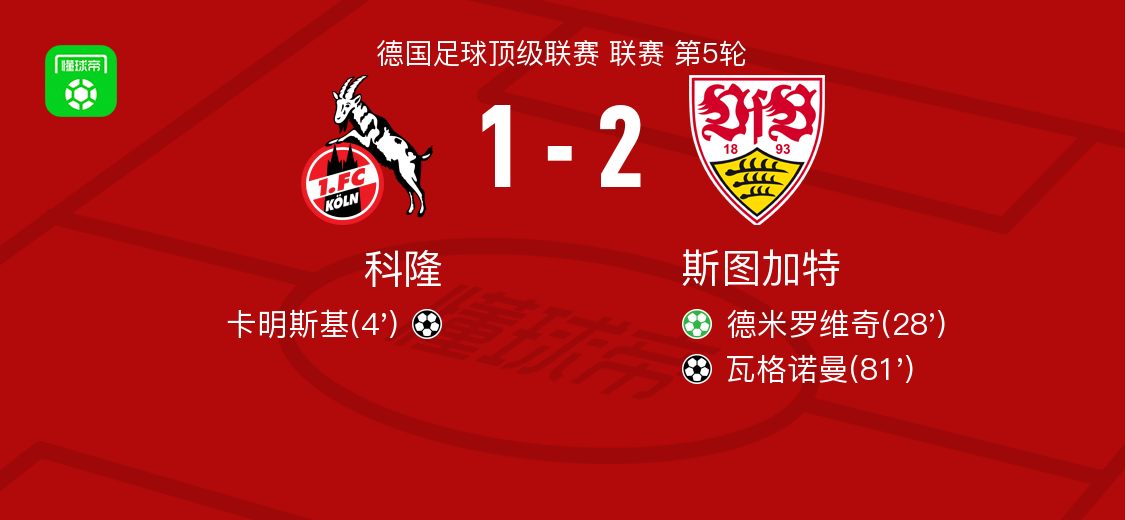 北京时间9月28日,2024-2025赛季德甲联赛第五轮赛事中,科隆队与斯图加特队展开了一场战术博弈。开场阶段科隆队迅速占据主动,阿赫以精准的传球撕破防线,助卡明斯基首开纪录,此举印证了主场作战的战术优势。面对落后局面,斯图加特队随即调整攻防节奏,德米罗维奇抓住点球机会扳平比分,展现出逆境中的心理韧性。下半场斯图加特队持续施压,施蒂勒的关键传球与瓦格诺曼的冷静射门形成战术配合,最终以2比1实现逆转
